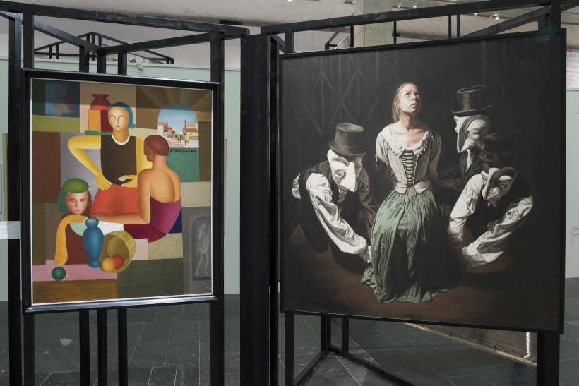 Uue põlvkonna hüperrealist Paul Sontag on suhteliselt vähetuntud nimi. Varalahkunud kunstniku loomingus on tavapärasemaid natüürmorte ning portreesid, ent mitmel korral on Sontag jõudnud fantaasiastseenideni, milles avaldub talle omane ühiskonnakriitiline, ent omal moel introvertne pilk. Meie näitusele valitud teos ei esinda küll niivõrd sotsiaalkriitilisust, ent tekitab huvi intrigeeriva kompositsiooni tõttu. Teos balansseerib erinevate aegade vahel: stseenis on viiteid keskaegsele teatrile, valgustus ja taust kasutavad barokist tuntud võtteid, teema on samas ülekantav tänapäeva.