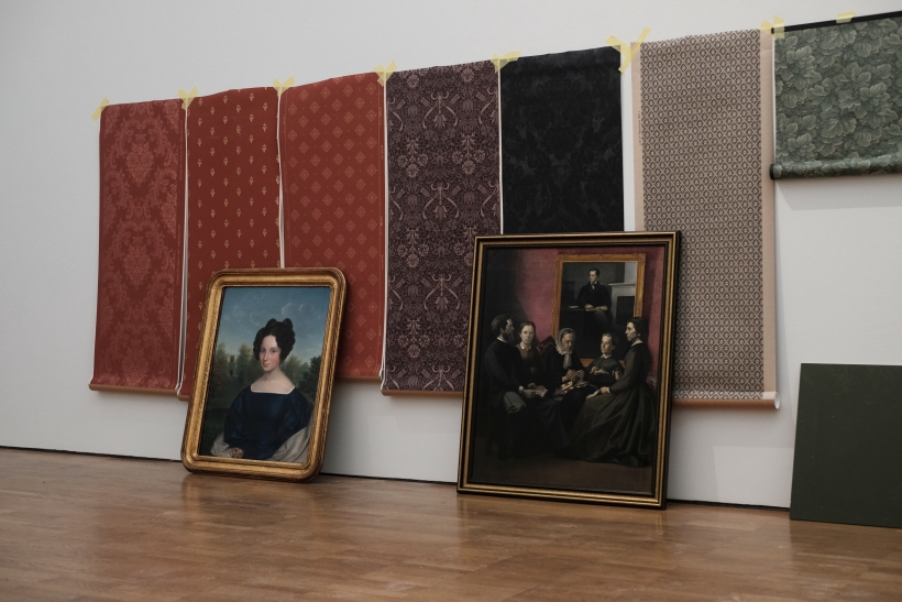 Ekspositsioonisaalis õiget tapeeti valimas. Fotod: Tõnis Saadoja