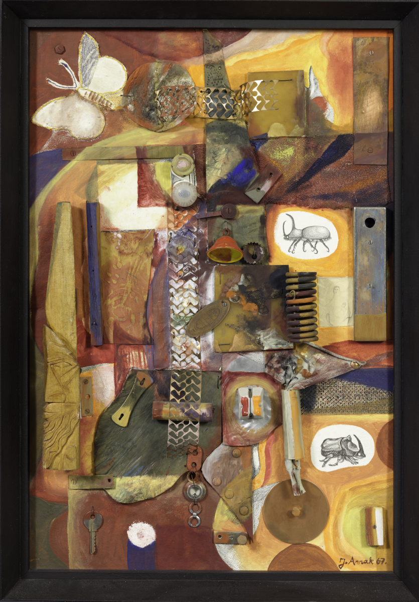 Jüri Arrakult pärinevad 1960. aastate keskpaiga Eesti kunsti ühed kõige huvitavamad assamblaažid ehk teosed, mis ühendavad kahemõõtmelise pildipinna kolmemõõteliste esemete ja materjalidega ning teevad nähtavaks pildi ruumiliseks muutumise protsessi. Kollaaž ja assamblaaž olid 1960. aastate kunstis mitmel viisil tähenduslikud nähtused: need (taas)lõid sideme Lääne moodsa kunsti ajaloo ja kaasaegse kunstiga ning väljendasid samas fragmentaarset, dünaamilist elutunnetust, mille selle kümnendi kiired muutused olid kaasa toonud. Arrak õppis Eesti NSV Riiklikus Kunstiinstituudis metallikunsti ning seetõttu on tema varastel assamblaažidel sageli metallobjektid (plaaditükid, võrguribad, spiraalid jm). „Esemed putukatega” ühendab metallosad popilike värvipindade ning realistlike joonistustega liblikast ja põrnikatest, tuues kokku tegelikkuse edasiandmise erinevad viisid: abstraktse, illusoorse, materiaalse. 1960. aastate keskpaiga noored kunstnikud kasutasid oma eksperimentaalsemat laadi teoste algimpulsina sageli loodusmotiive ning arendasid välja nn biomorfse suuna; taimed ja maastikud mõjusid süütu ja vähetähendusliku teemana ning pääsesid kergemini ideoloogilise kontrolli tähelepanu keskpunktist. Loodusvormide töötlustest kasvasid hiljem välja ka Arraku pildimaailmade väänlevate vormidega peategelased.
