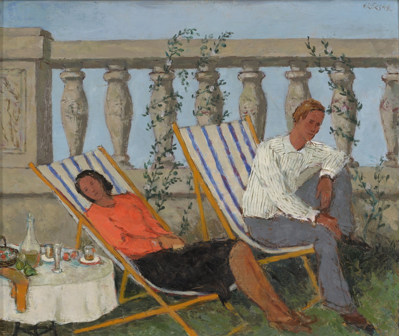 Suur osa eesti kunstnike sõjaaegsetest töödest näivad sõjateemat lausa ignoreerivat. Eriti iseloomulik on see kunstnikele, kes elasid sõja üle sakslaste okupeeritud Eestis. Kohvikuid ja puhkehetki kujutas palju Endel Kõks, kes lõpetas kunstikooli 1943. aastal ning saigi avalikkusele tuntuks just sõja ajal. Kõksi maalidele on omane summutatud ja samas pingeline atmosfäär. Jõudeelu ja pidutsemist kujutavaid maale saab tõlgendada mitmeti – näiteks soovina pääseda rusuvast tegelikkusest või ka reaktsioonina sõjaajal valitsenud puudusele, liikumispiirangutele, ebakindlusele ja represseerimisohule. Selliseid pilte valmis Euroopas tollal kõikjal. Kõksi loomingust on teada ka sõjamaale, aga kuna selleteemalised tööd valmisid sakslaste tellimusel ja kajastasid vastavat vaatenurka, ei ole need säilinud. 1944. aastal põgenes ta Eestist ning elas ülejäänud elu paguluses.