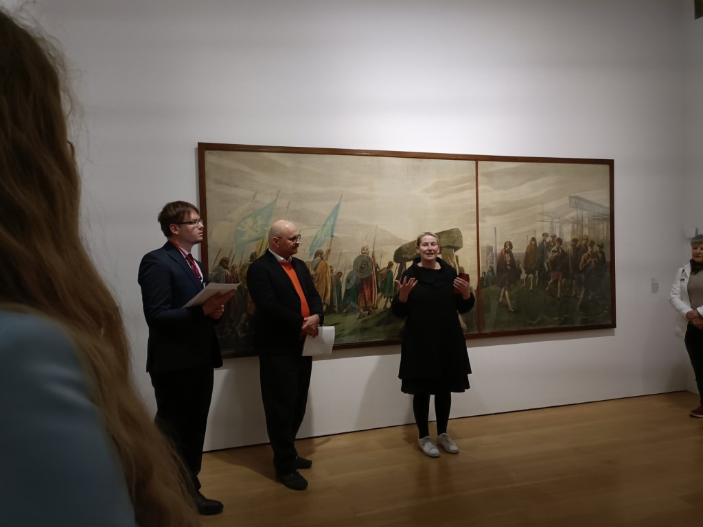 Rõõm oli külastada IMMA rahvusvahelist näitust „Self-Determination: A Global Perspective“ ning 26. märtsil osa saada IMMA kuraatori Seán Kissane’i ja Eesti ajaloolase Mart Kuldkepi võrratust dialoogist, mille raames tutvustati maale, mis kirjeldasid kunstnike silmade kaudu Esimese maailmasõja järel tekkinud rahvusriike ja nende rahvuslikke identiteete. Saatkonnale tähendas näituse avamine pooleteiseaastase eduka koostöö kulminatsiooni. Me täname siiralt Kumu ja kultuuriministeeriumi esindajaid osalemise ning Eesti kunstnike võrratute tööde esitluse eest. Mulle isiklikult jäid tänu Mart Kuldkepi muhedale selgitusele eriti meelde maalid, millest üks väljendas tolleaegse Eesti kohvikukultuuri ja teine rõõmsate eestlaste kartulikorjamist vabas riigis ja oma põllul – need on teemad, mis kõnetavad meid ka pea sada aastat hiljem. Tore oli kohtuda Eesti Kunstimuuseumi Kunstisõprade Seltsiga. Aitäh kõigile!