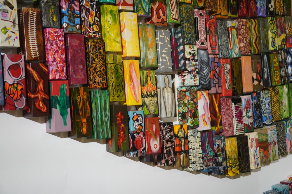 BR: Kõige suurem kogus oli neid ilmselt väljas Kunstihoone näitusel „Hullud päevad“, mis oli aastal 2013. Seal oli huvitav publiku kaasamise aspekt: oli kohake, kus külastav publik sai valmis pandud pakke ka ise üle maalida. Kui suure osa moodustavad sellest kogust, mis sul on, näiteks teiste inimeste maalitud ja tehtud pakid ja kas ka Kumus näeme mõnda teise inimese maalitud pakendit?