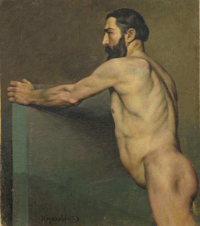 Johann Heinrich Kosakowsky (1853–1894) oli baltisaksa kunstnik, kes õppis Peterburi Kunstiakadeemias 1873–1885. Ta on maalinud maastike kõrval meesakte, jäljendades oma esituses 19. sajandi akadeemilises kunstiõpetuses levinud meesmodellide poseerimistavasid. Anatoomia oli 19. sajandil kriitiline ruum, kus sepistati maskuliinset identiteeti. Selle ajastu mehe mudel oli Pariisi École des Beaux-Arts’i eeskujul ka teistes akadeemiates sõjamees, madalamast klassist tööline või maadleja-rammumees. Teos oli väljas Kumu näitusel „Avatud kollektsioonid. Sõna saab kunstnik“ (2019).