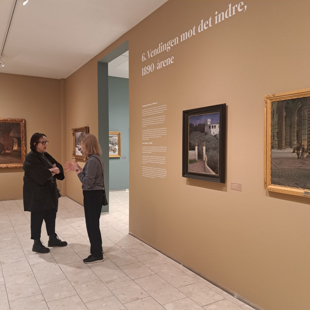 Näituse „Gothic Modern“ külastamine oli üllatuslik, sest kuigi mõned olid sama näitust Ateneumi kunstimuuseumis näinud, siis ruumide erinevus oli nõnda suur, et näitus mõjus hoopis teistsugusena, kui Ateneumi ajalooliste ruumidega muuseumis. Näitust tutvustasid selle kuraatorid Vibeke Waallaann Hansen ja Cynthia Osiecki, kes rääkisid konkreetsetest kunstiteostest, näituse alateemadest ja laiemalt selle ülesehitusest. Kuigi näitustel on teatud hulk keskseid teoseid, mis on samasugused, oli Norra valik siiski mõnevõrra teistsugune.