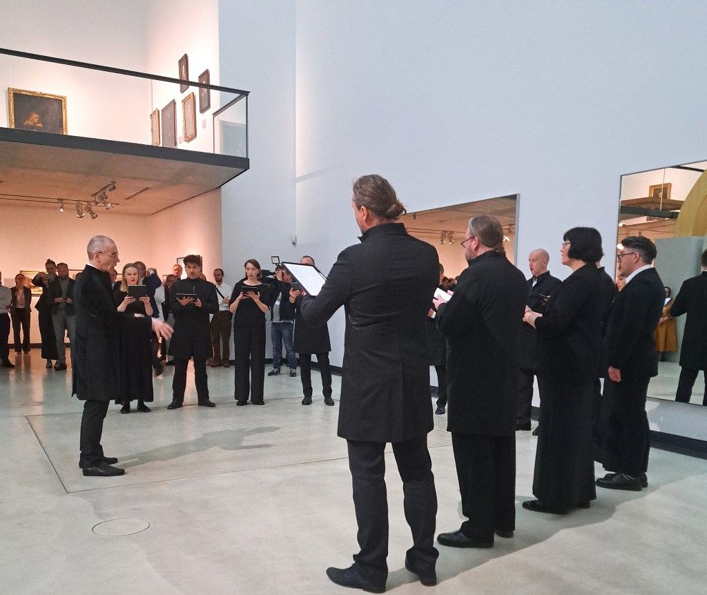 Nagu näituse pealkiri viitab, toob väljapanek kokku sealhulgas kunstniku Gerhard Richteri ja Arvo Pärdi. Nende kahe loomingut on ka varem koos esitletud, kuid antud näituse kontekstis on eriline see, et esimest korda eksponeeritakse Pärdi käsikirju väljaspool Eestit. Pärdi loomingus aitas kuraatoritel orienteeruda Arvo Pärdi keskuse kuraator Kai Kutman, kuid nõu ja jõuga aitasid teisedki inimesed mitmetes erinevates küsimustes. Sellises mahus kunsti ja muusika kokkutoomine oli näitusetegijatele põnev: Pärdi käsikirjaline materjal on väljas kunstinäituse kontekstis ja samaaegselt saab Lipsiusbaus maalide ja skulptuuride vahel jalutada, kõrvus Pärdi muusikapalad, mis kabelis kõlaritest vaikselt mängivad.