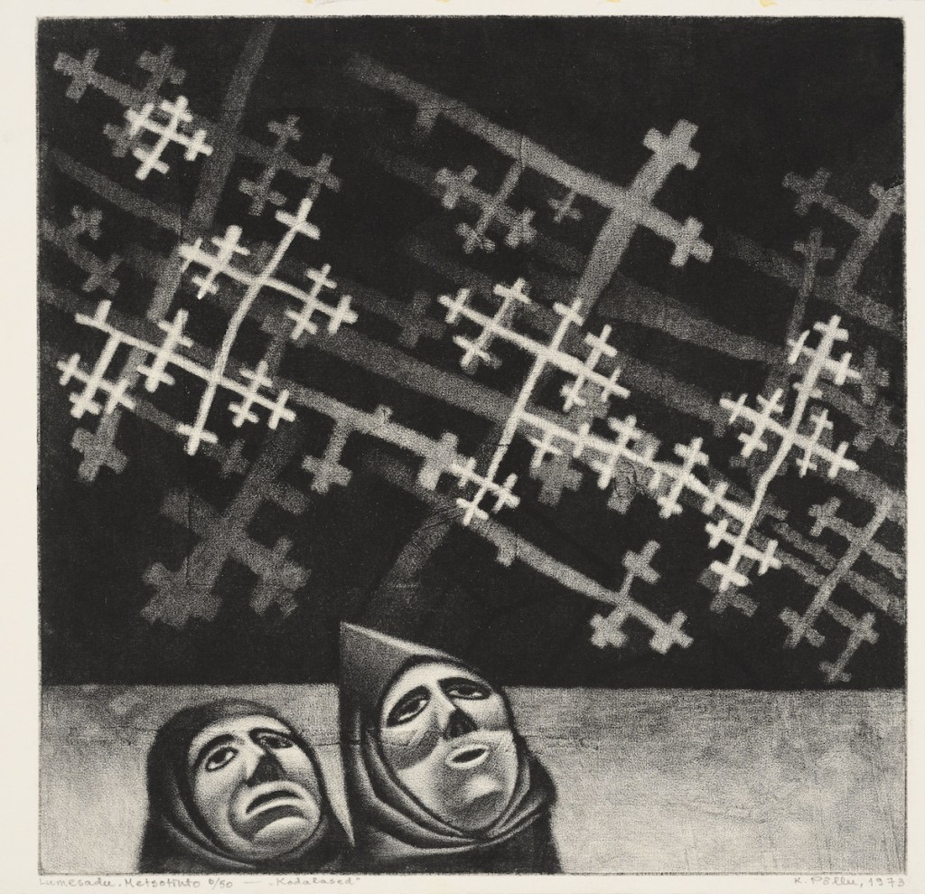 Kaljo Põllu. Lumesadu. Sarjast „Kodalased“. 1973. Metsotinto. Eesti Kunstimuuseum