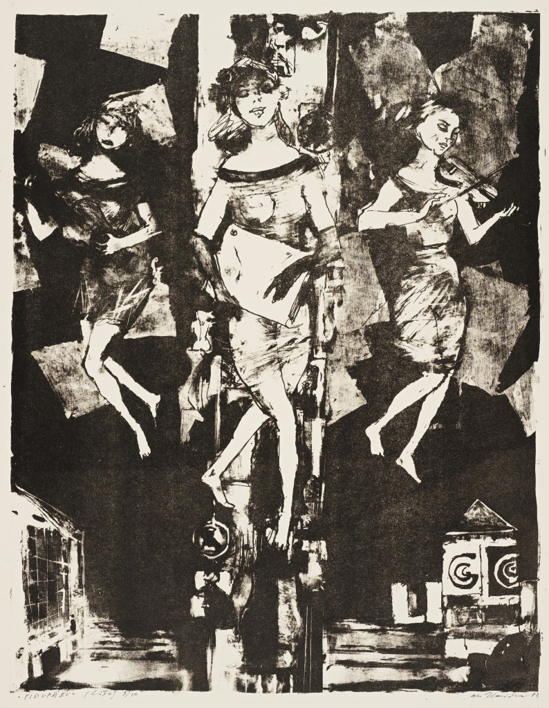 Alo Hoidre. Pidupäev. 1984. Litograafia. Eesti Kunstimuuseum