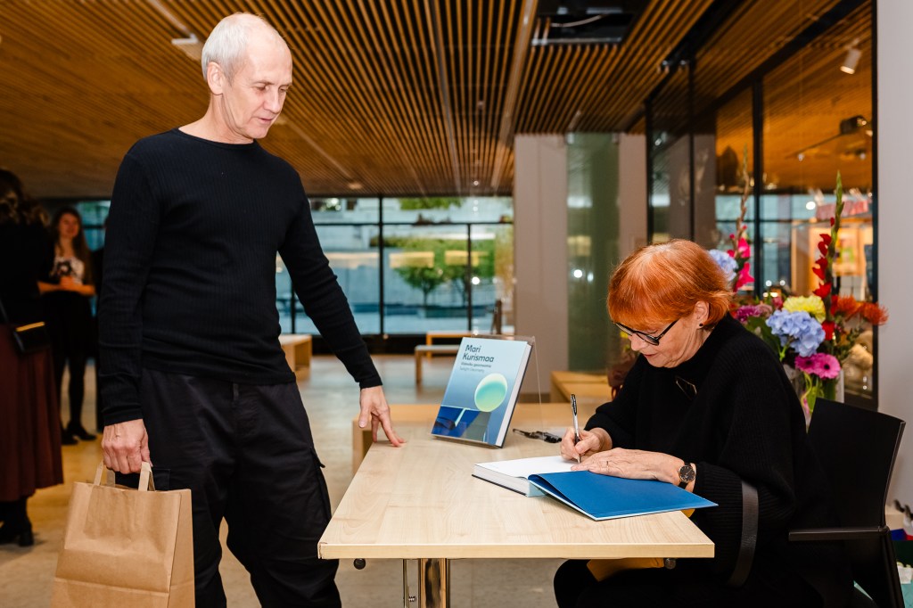 Mari Kurismaa oma näituse raamatut signeerimas. Foto: Karolin Köster