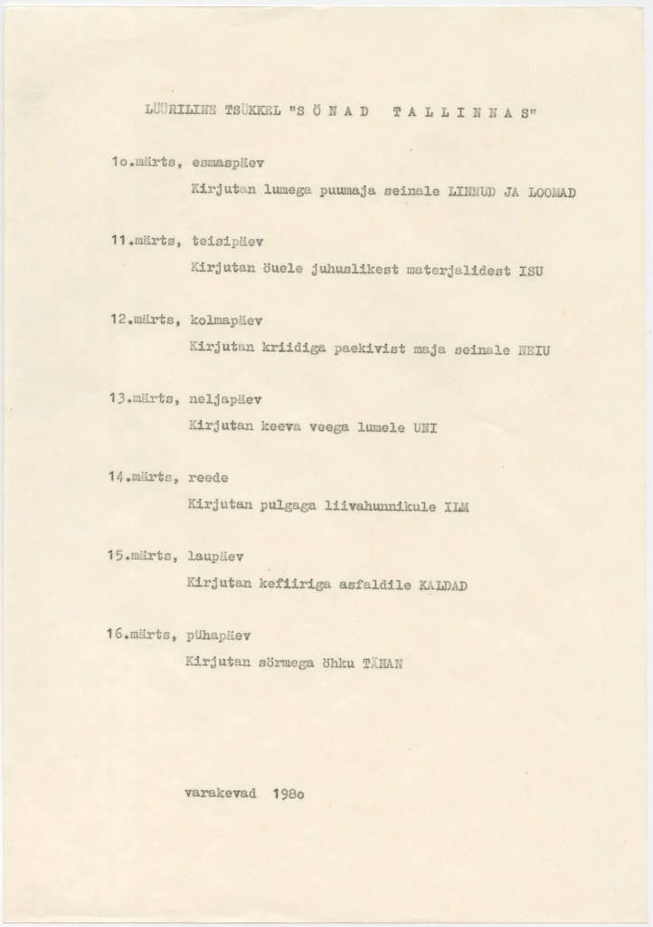 Mari Kurismaa ja Mari Kaljuste. Lüüriline tsükkel. Sõnad Tallinnas. 1980. Kunstnike loal