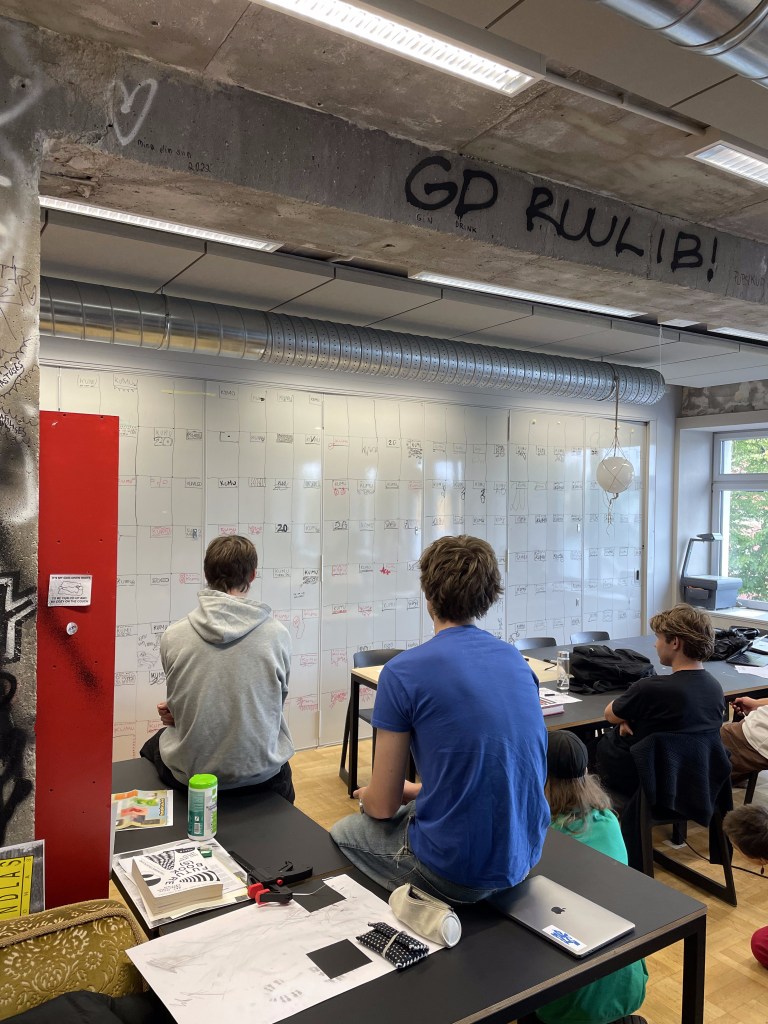 Mia Greta: Inspiratsioonile ja visuaalsele lähenemisele aitas kaasa see, et meil oli kohe alguses loengus ülesanne, kus pidime terve stuudio seina täitma erinevate logokujundustega. Saime hästi palju erinevaid ideid genereerida ning tegime hulgaliselt erinevaid variatsioone, mis pani aluse ka meie lõplikule ideele.