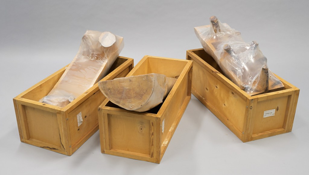 Õõnestatud puutüvest kuumutatud plastikuga kaetud kolm objekti on loodud üheksakümnendate keskel, kui klassikaline modernistlik skulptuurikäsitlus oli Eestis aktiivselt kadumas. Skulptorid pöördusid oma otsingutes uute materjalide ja ideelahenduste poole. Nii võib ka Ekke Väli teoses näha kümnendil enamikus kunstiliikides levinud senisest erinevat kehalisuse tunnetust. Nii tehnilisel tootmisliinil pakendina kasutatud plastikul kui ka plastikkilesse suletud puidul oli sel perioodil just oma ajale spetsiifiline, eelnevast, samuti praegusest küllaltki erinev tähendus. Ekke Väli objektid on Eesti Kunstimuuseumi kollektsioonile tänuväärseks täienduseks, avardades arusaama üheksakümnendate vabaskulptuurist.