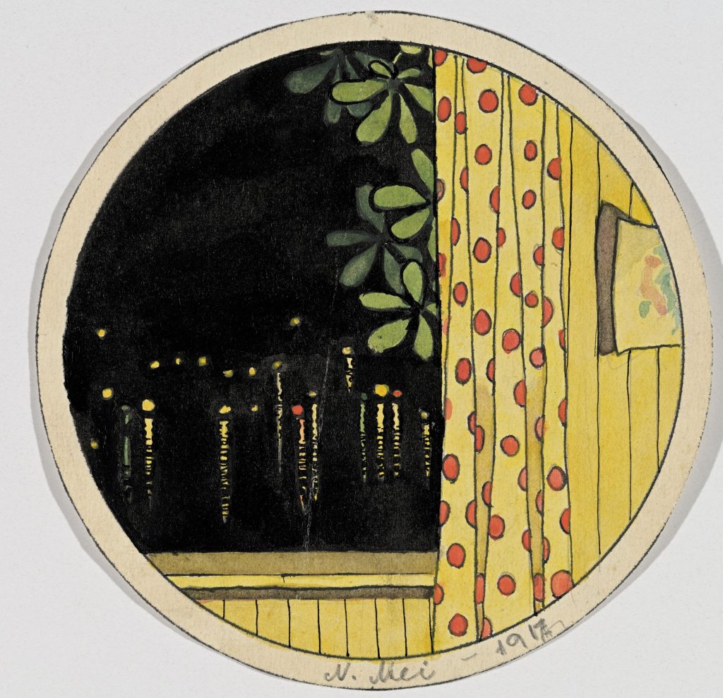 Natalie Mei. Vaade koduaknast Tallinnas Miinisadamas. 1917. Tušš, akvarell