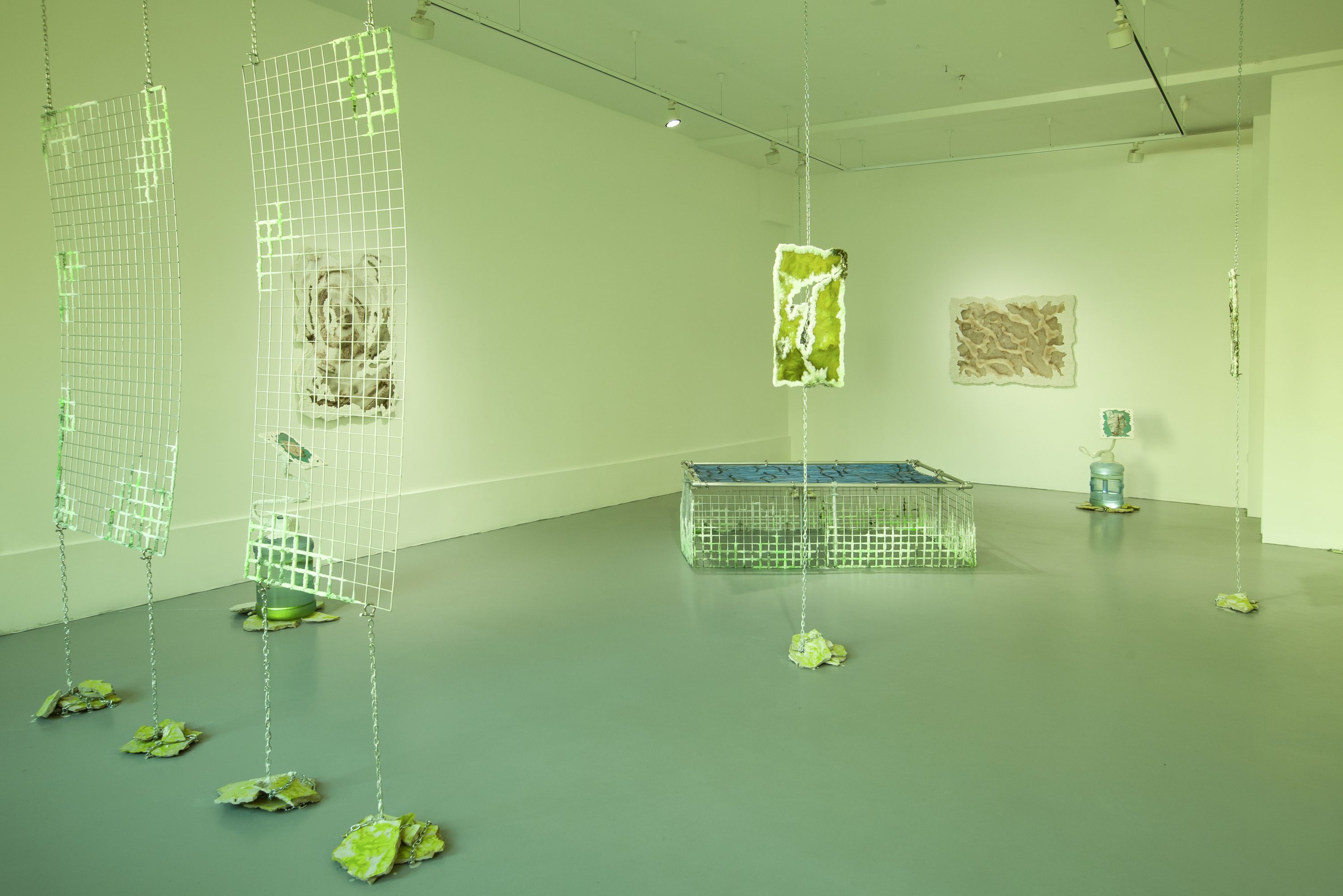 Kristina Õllek. Neelates hüpoksilist vett. 2023; Vee, tsüanobakteri, meresoola ja muu geopoliitilise jõu vool läbi metallvõrgu. 2022